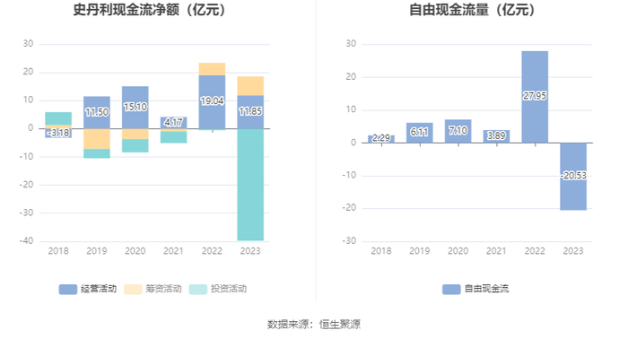 进一步统计发现,2023年公司自由现金流为-20.53亿元,上年同期为27.95亿元。