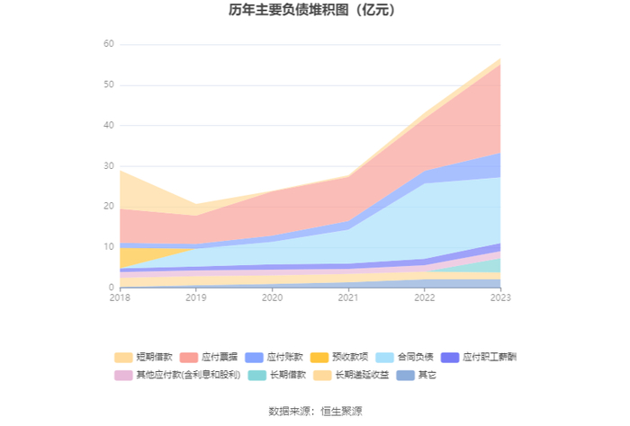 负债重大变化方面,截至2023年年末,公司应付票据较上年末增加68.88%,占公司总资产比重上升4.58个百分点;应付账款较上年末增加96.75%,占公司总资产比重上升1.79个百分点;合同负债较上年末减少13.09%,占公司总资产比重下降5.32个百分点;应付职工薪酬较上年末增加27.46%,占公司总资产比重上升0.05个百分点。