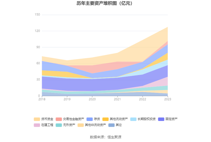 资产重大变化方面,截至2023年年末,公司货币资金较上年末减少35.16%,占公司总资产比重下降18.37个百分点;在建工程较上年末增加408.49%,占公司总资产比重上升9.64个百分点;其他流动资产较上年末增加716.59%,占公司总资产比重上升8.43个百分点;交易性金融资产较上年末增加1671.59%,占公司总资产比重上升4.66个百分点。