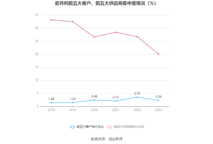 报告期内,公司前五大客户合计销售金额2.39亿元,占总销售金额比例为2.39%,公司前五名供应商合计采购金额16.62亿元,占年度采购总额比例为20.04%。