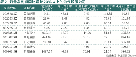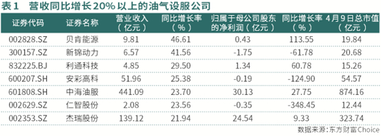截至4月9日,油气设服板块的61家公司中有29家公司通过业绩快报和正式年报方式披露2023年业绩情况,其中实现营收同比增长的公司达20家,实现归母净利润同比增长的达18家。另外的32家公司中,有19家公司通过业绩预告方式披露了2023年业绩情况,其中有13家公司业绩预喜(扭亏、减亏、预增)。