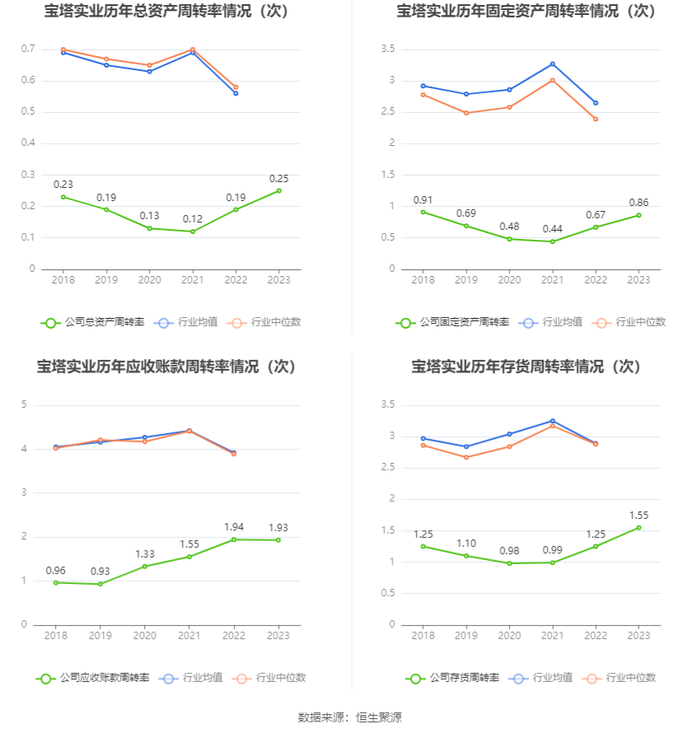 数据统计显示,宝塔实业近三年营业总收入复合增长率为13.29%,在金属制品行业已披露2023年数据的31家公司中排名第15。近三年净利润复合年增长率为-346.99%,排名31/31。