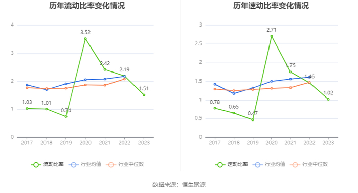 2023年,公司流动比率为1.51,速动比率为1.02。