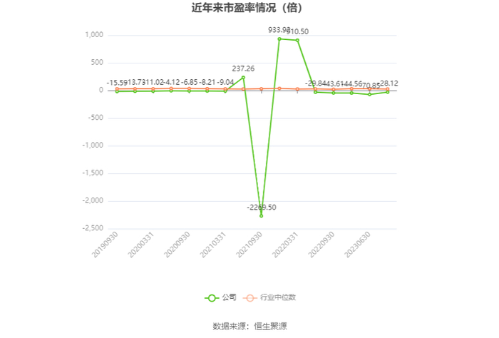 市盈率为负时,不显示当期分位数,会导致折线图中断。文章来源:中国证券报·中证网文章作者:李香才原标题:宝塔实业:2023年亏损1.63亿元