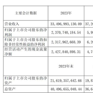 北方稀土4月19日披露2023年年报:2023年,公司实现营业总收入334.97亿元,同比下降10.10%;归母净利润23.71亿元,同比下降60.38%;扣非净利润23.18亿元,同比下降62.63%;经营活动产生的现金流量净额为24.28亿元,同比下降48.79%;报告期内,北方稀土基本每股收益为0.6558元,加权平均净资产收益率为11.44%。公司2023年年度利润分配预案为:拟向全体股东每10股派0.7元(含税)。