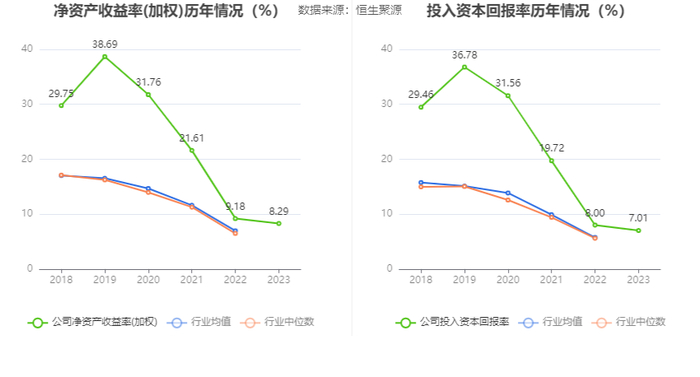 数据显示,2023年公司加权平均净资产收益率为8.29%,较上年同期下降0.89个百分点;公司2023年投入资本回报率为7.01%,较上年同期下降0.99个百分点。