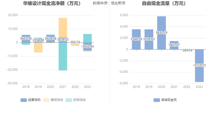 进一步统计发现,2023年公司自由现金流为-5735.73万元,上年同期为-385.74万元。