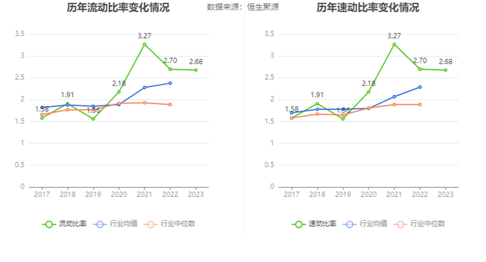 2023年,公司流动比率为2.68,速动比率为2.68。