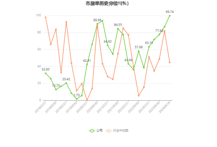 市盈率为负时,不显示当期分位数,会导致折线图中断。
