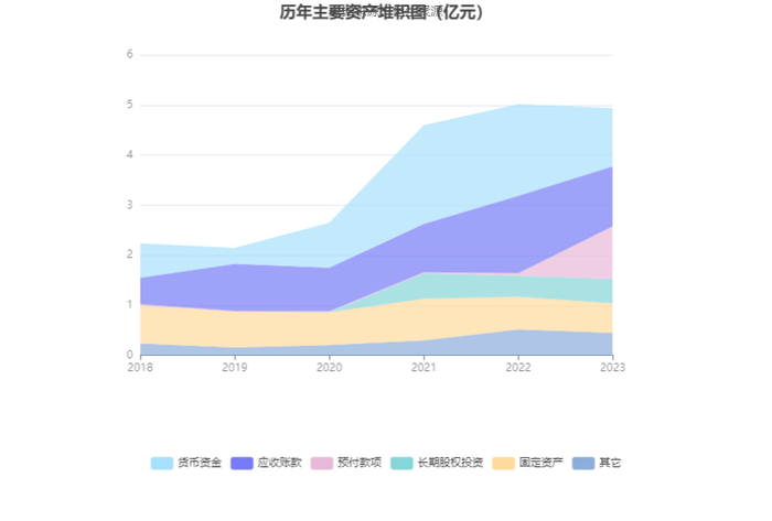 资产重大变化方面,截至2023年年末,公司预付款项较上年末增加1843.51%,占公司总资产比重上升20.26个百分点;货币资金较上年末减少36.67%,占公司总资产比重下降12.97个百分点;应收账款较上年末减少22.76%,占公司总资产比重下降6.64个百分点;长期股权投资较上年末增加16.46%,占公司总资产比重上升1.54个百分点。