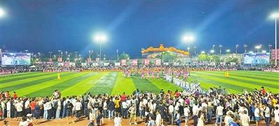 比赛定在当日18∶30开始。“村超”赛场座无虚席。开赛前1小时,赛场外就成了观众追逐的热点。为展示多元文化,贵州大学来自37个国家和地区的118名留学生组成方阵,在“村超”赛场周围进行巡游。留学生带来多国美食和各自的传统歌舞表演,为现场观众带来视觉和味觉的双重享受,“村超”国际范儿引来阵阵掌声。