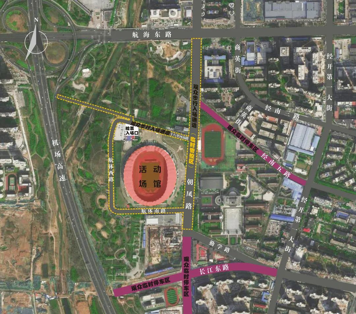 为确保球赛观众安全、顺利进退场,防止因人车混行发生道路交通事故,4月21日(周日)16:00至22:00对球迷徒步入场时途经的朝凤路(航海东路至勤学路段双向)、十八里河南路(朝凤路至机场高速涵洞西侧段双向)以及航体南路、航体西路实施临时交通管制,管制对象为各类机动车。