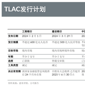 值得注意的是,除工商银行仅在境内发行TLAC债,其他四大国有行均可能同时面向境内和境外市场发行。