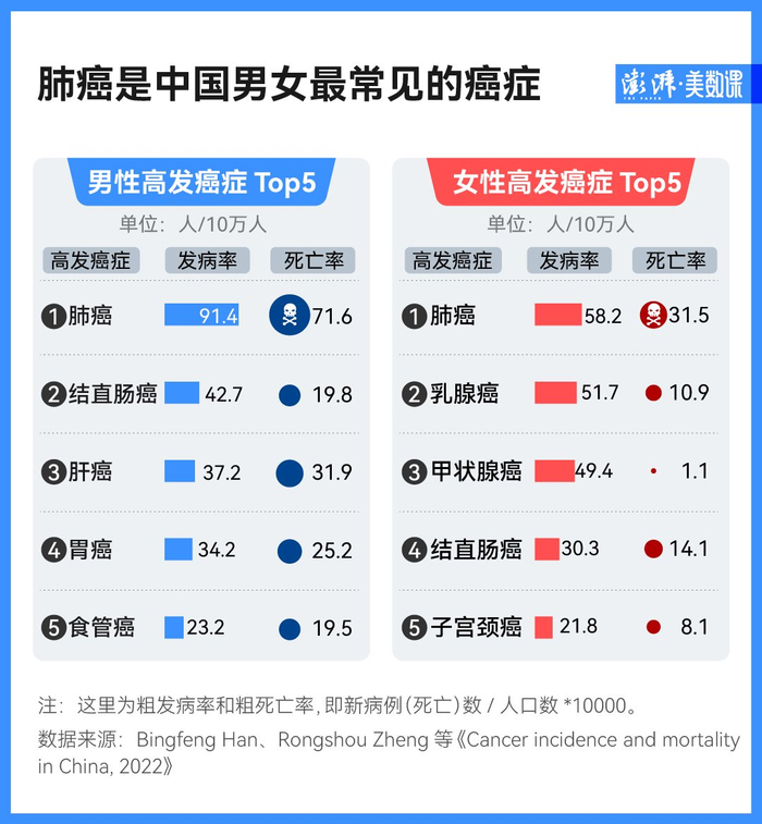 不过,同样是肺癌,女性的发病率和死亡率都要显著低于男性。