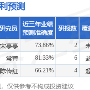 证券之星数据中心根据近三年发布的研报数据计算,中金公司常菁研究员团队对该股研究较为深入,近三年预测准确度均值高达81.33%,其预测2024年度归属净利润为盈利5.6亿,根据现价换算的预测PE为14.22。