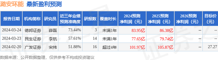 证券之星数据中心根据近三年发布的研报数据计算,德邦证券薛磊研究员团队对该股研究较为深入,近三年预测准确度均值为73.44%,其预测2024年度归属净利润为盈利83.95亿,根据现价换算的预测PE为8.54。