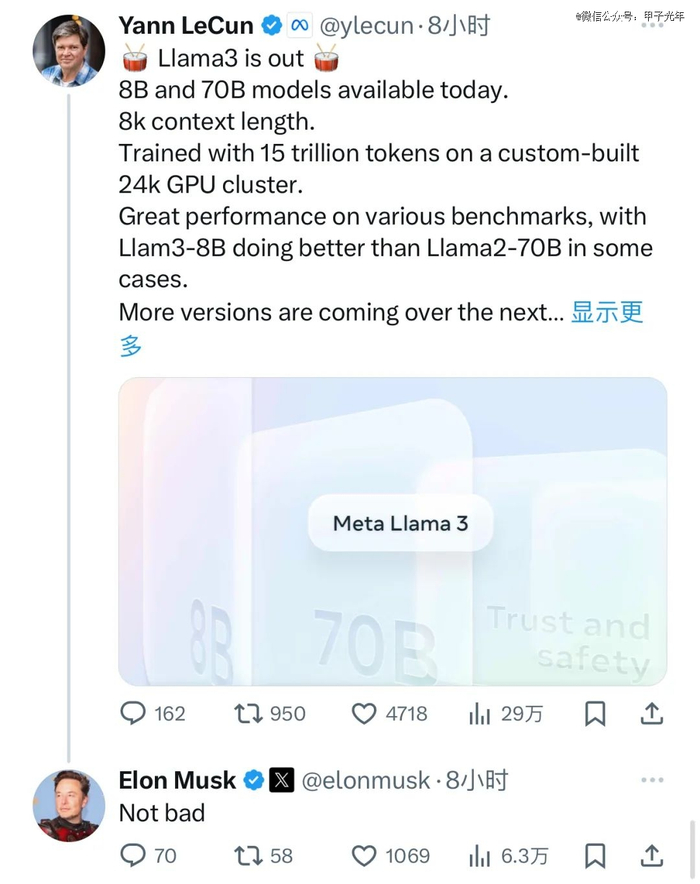 消息一出便引起热议,埃隆·马斯克(Elon Musk)在杨立昆(Yann LeCun)的X下面评论:“还不错(Not bad)。”