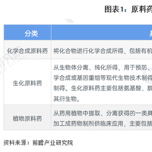 根据原料药来源不同,可以分为化学合成原料药、生化原料药和植物原料药。