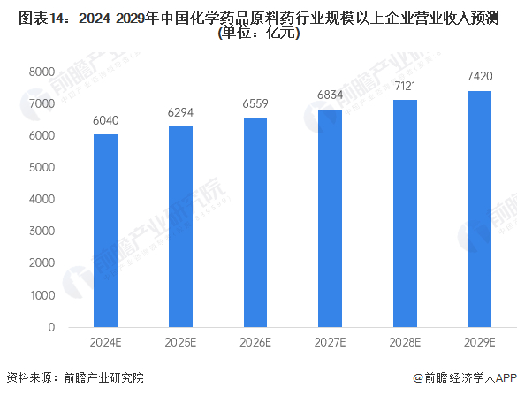 国家近年来大力推动供给侧结构性改革,主要依托监管和引导的方式逐渐淘汰落后产能,鼓励原料药企业转型升级,同时加大原料药市场规范力度,打击违法涨价和恶意控销行为。一方面,通过合理提高环保标准,引导龙头企业提升工艺水平增强竞争力,促使高污染不合规的企业退出市场,减少原料药市场的低价竞争者;另一方面,发布《短缺药品和原料药经营者价格行为指南》,对恶意操纵原料药价格的行为进行处罚。产能的整合、工艺的提升以及合理利润的保持,将为我国原料药行业未来的持续健康发展打下更加坚实的基础。前瞻预测,到2029年我国化学药品原料药行业规模以上企业市场规模将超过7400亿元,年均复合增长率达到4.2%。