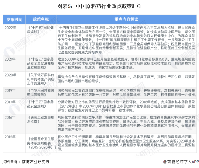 整体来看,我国针对原料药的政策演变始终围绕增强研发能力,完善医疗保障体系等方面展开。
