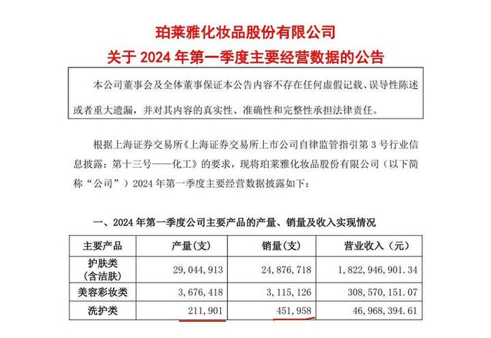 公司在解释洗护类产品一季度平均售价同比上升的原因时也表示,主要系单价较高的大单品(精华、精油类)销售占比变动所致。