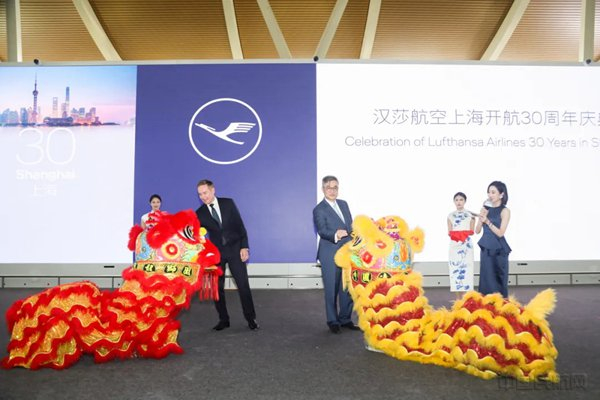 汉莎航空开航上海30周年仪式上,以舞狮点睛祝福未来发展