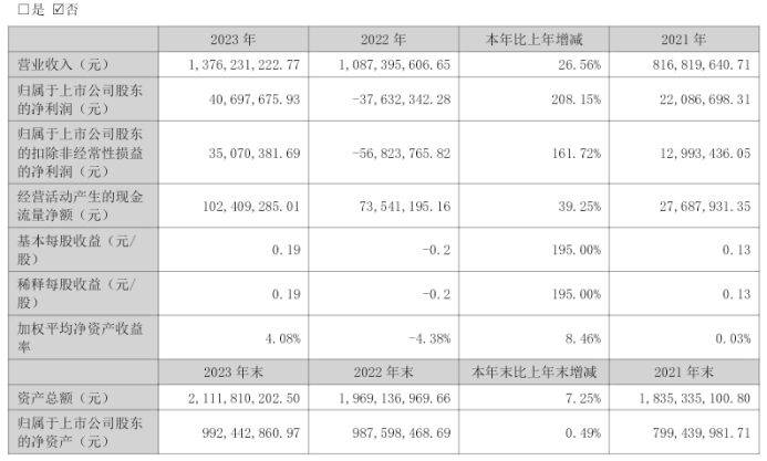 挖贝网4月19日,美力科技(300611)近日发布2023年年度报告,报告期内公司实现营业收入13.76亿元,同比增长26.56%;归属于上市公司股东的净利润4069.77万元,较上年同期扭亏为盈。