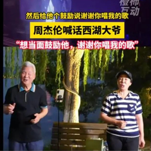 周杰伦喊话的这位“西湖大爷”,是杭州70多岁的邵老伯,他几年前就开始和老伴张阿姨一起在西湖边唱歌,因为唱得好,会唱的歌曲多,经常让游人驻足聆听,还吸引了很多大伯大妈一起唱。去年他凭借一首《东风破》成功“出圈”,收获了上百万网友的点赞,大概也就是因此吸引到了周杰伦的注意。