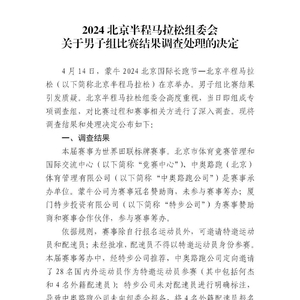据此前报道,15日晚,@北京国际长跑节-北京半程马拉松 发布情况说明:关于网友反映蒙牛2024北京国际长跑节——北京半程马拉松男子组比赛结果的问题,组委会高度重视,已成立专项调查组正在开展调查,调查处理结果将及时向社会公布。