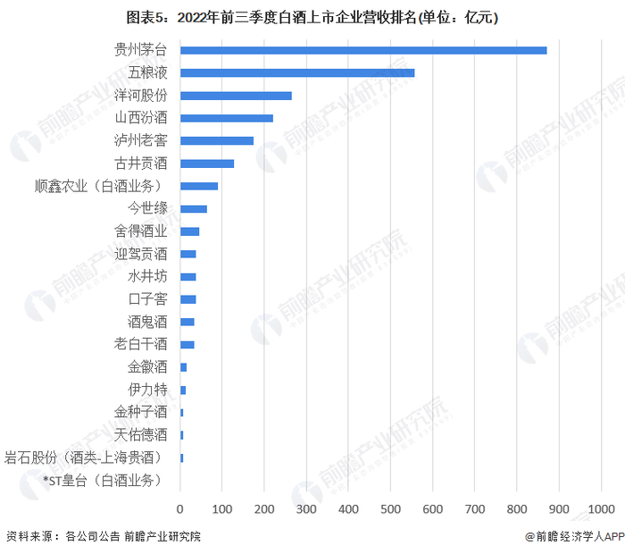从企业营业收入情况来看,2022年前三季度,20家白酒上市企业实现总营收2658.26亿元,在20家白酒上市公司中,有6家白酒上市公司前三季度营收超百亿元,分别是贵州茅台、五粮液、洋河股份、山西汾酒、泸州老窖和古井贡酒;有17家营收实现增长,出现下滑的3家分别是牛栏山母公司顺鑫农业、伊力特以及天佑德酒。