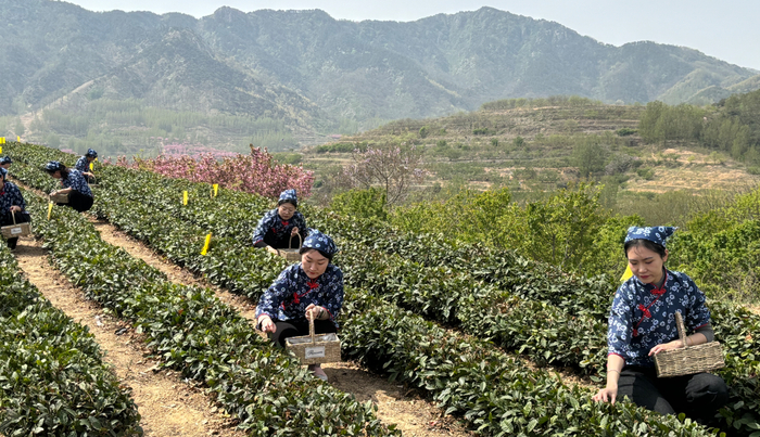 茶园里,一棵棵茶树经过冬天的养精蓄锐,嫩绿的新芽已经占满枝头,采茶女们手提茶篮,采摘下一片片新鲜的谷雨茶叶。