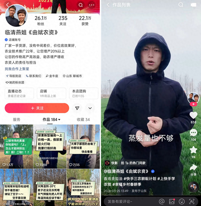说干就干,这个新理念接受快、新技术玩得转、新思路打得开的新农人,开始通过短视频讲解农业知识,每天发起直播为农民答疑解惑。“我会按农业生产周期和田间实践观察,提前讲解相关的农业知识,这能更好地保证内容的准确性和及时性。”打开“临清燕姐《由斌农资》”的主页,会发现满满的干货,其中不乏点赞过万、播放量百万的作品。