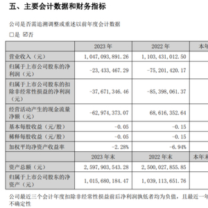 挖贝网4月19日,迦南科技 近日发布2023年度报告,报告期内公司实现营业收入1,047,093,891.26元,同比减少5.11%;归属于上市公司股东的净利润-23,433,467.29元,上年同期-75,201,420.17元,同比亏损减少。