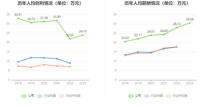 截至2023年末,公司员工总数为58544人,人均创收152.60万元,人均创利24.10万元,人均薪酬30.59万元,较上年同期分别增长6.95%、9.40%、8.74%。