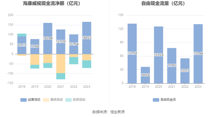 进一步统计发现,2023年公司自由现金流为130.44亿元,相比上年同期增长136.87%。