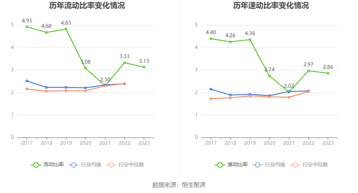 2023年,公司流动比率为3.13,速动比率为2.86。