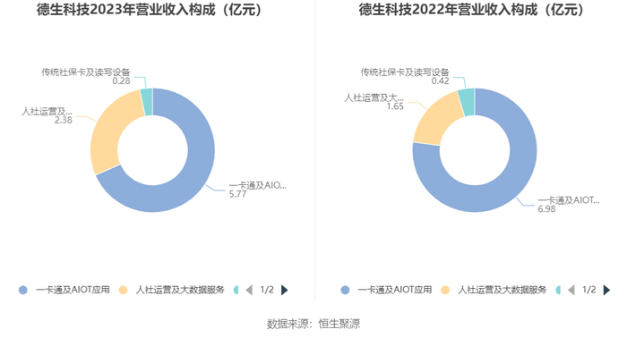 分产品来看,2023年公司主营业务中,一卡通及AIOT应用收入5.77亿元,同比下降17.42%,占营业收入的68.44%;人社运营及大数据服务收入2.38亿元,同比增长44.15%,占营业收入的28.26%;传统社保卡及读写设备收入0.28亿元,同比下降33.68%,占营业收入的3.30%。