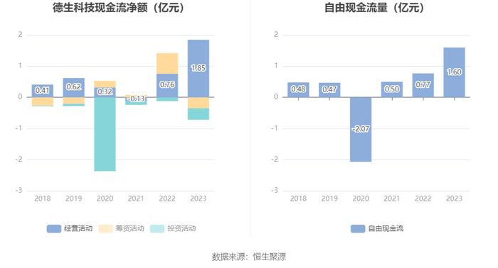 进一步统计发现,2023年公司自由现金流为1.60亿元,相比上年同期增长108.26%。