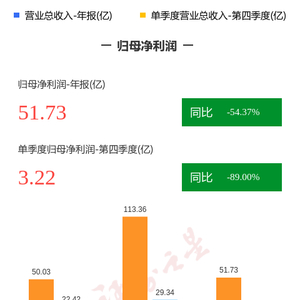 证券之星消息,广汇能源2023年年报显示,公司主营收入614.75亿元,同比上升3.48%;归母净利润51.73亿元,同比下降54.37%;扣非净利润55.41亿元,同比下降49.95%;其中2023年第四季度,公司单季度主营收入119.06亿元,同比下降46.2%;单季度归母净利润3.23亿元,同比下降89.0%;单季度扣非净利润7.13亿元,同比下降73.7%;负债率51.56%,投资收益-1.07亿元,财务费用9.22亿元,毛利率16.35%。