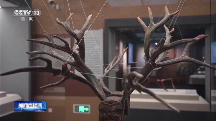 湖北省博物馆学术研究中心主任 杨理胜:鹿是一种比较祥瑞的动物,在楚人看来,他把鹿角插在这个镇墓兽的头顶上面的话,其实可能也有一种象征性的含义在里面,它要引领墓主人升天。