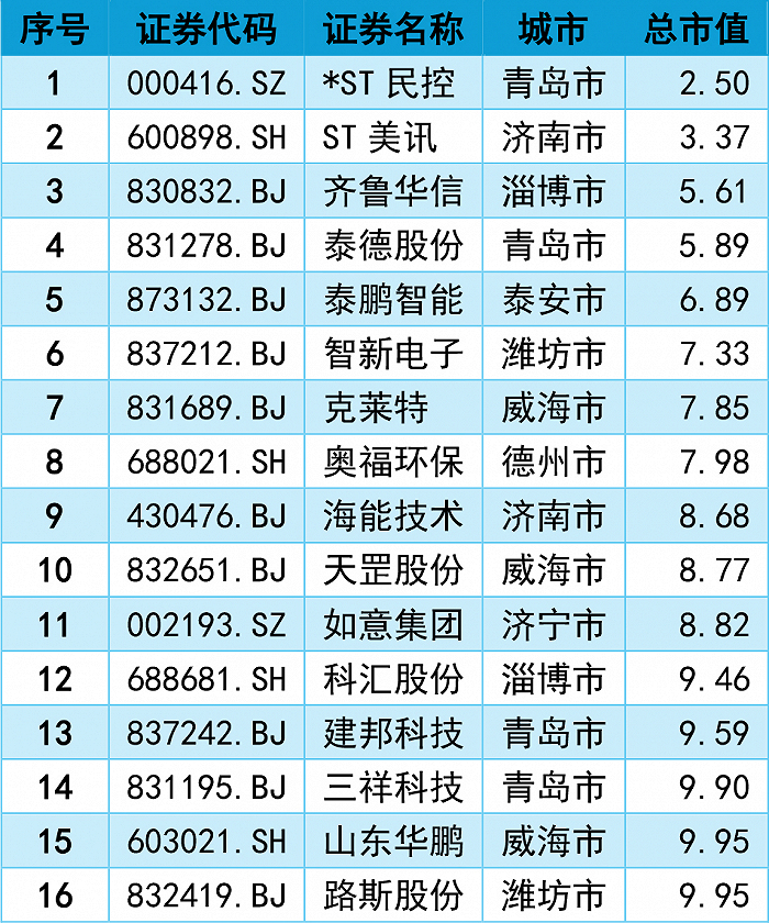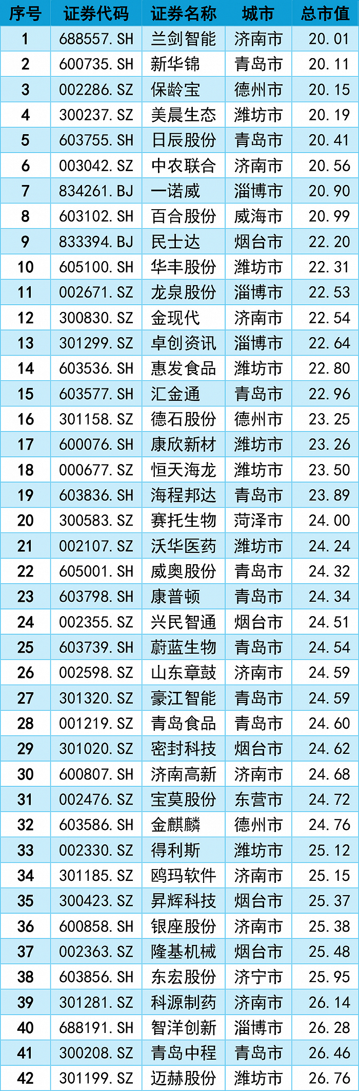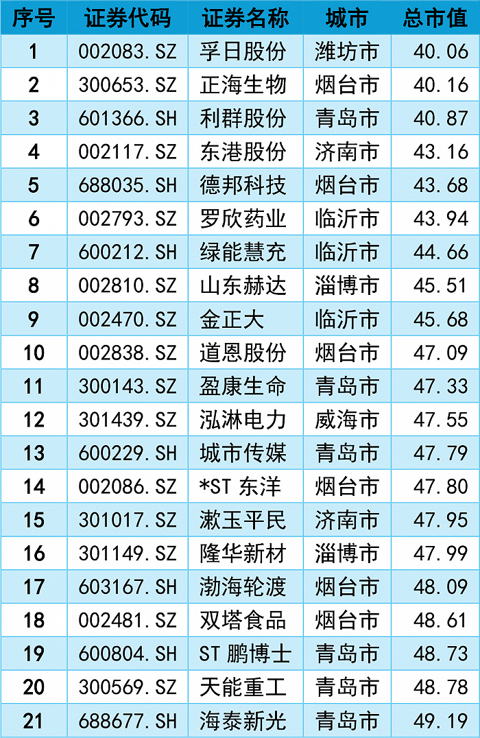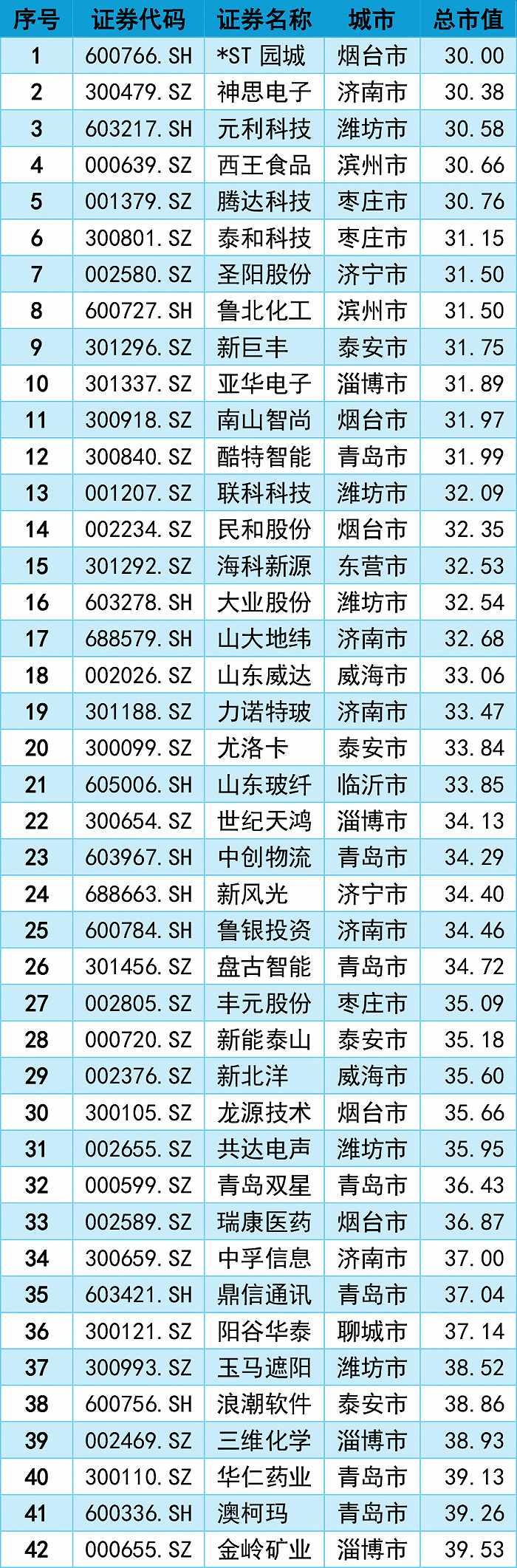 30亿以下市值的A股上市公司,山东共有114家,占比接近4成,是一个不小的群体。