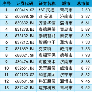 急需做好市值提升工作,近4成山东A股市值不足30亿元