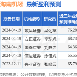 最新盈利预测明细如下: