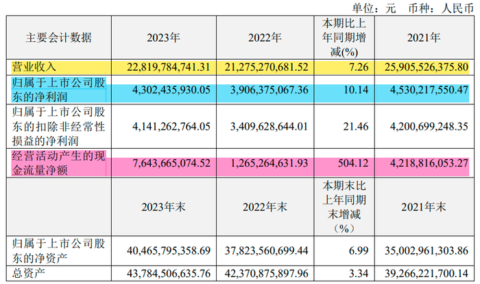 归属于上市公司股东的净利润43.02亿元,同比增长10.14%;