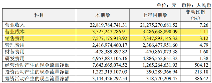 2023年报显示,恒瑞医药的营业成本、销售费用、管理费用、财务费用、研发费用的同比增速在1.11%—4.79%之间,均低于同期营收增速7.26%。