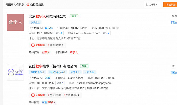 数字人也不是个新技术,AI数字人不是京东第一个人做,市面上很多。甚至价格很低。天眼查APP上一搜,光是相关企业就有100多家,这么多企业。