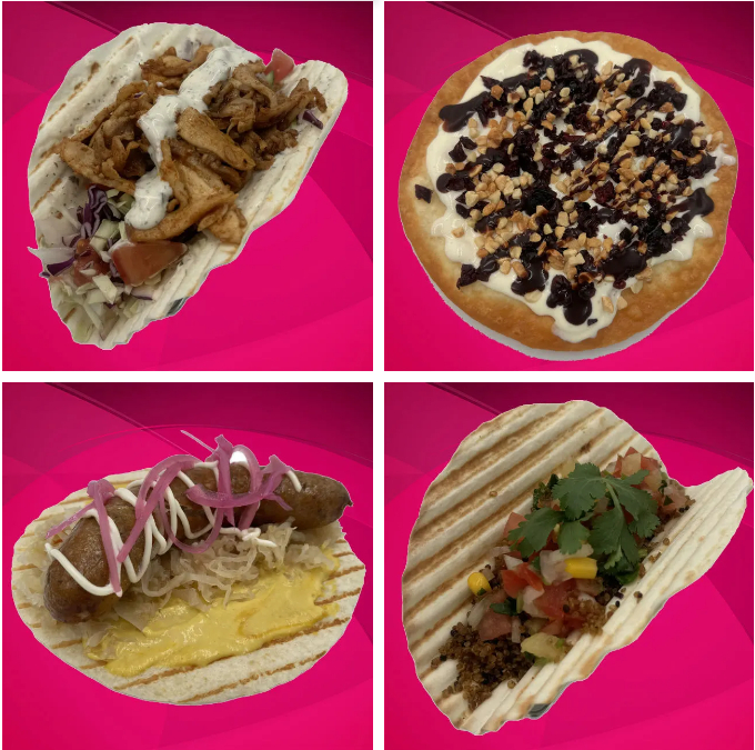 以德国街头特色小吃闻名的柏林百特,这次他们的塔可阵容也同样带着德式风范,包括从他家招牌Döner改造而来的Döner塔可,用德国食材如纽伦堡香肠、酸菜等制作的德式塔可;玉米、菠萝、烤藜麦制作的素食塔可(THE VEGAN SUPREME);用油炸玉米卷包裹奶酪、酸奶、花生碎、蔓越莓,淋上一层巧克力酱的甜点塔可(THE SWEET DESSERT TACO)。
