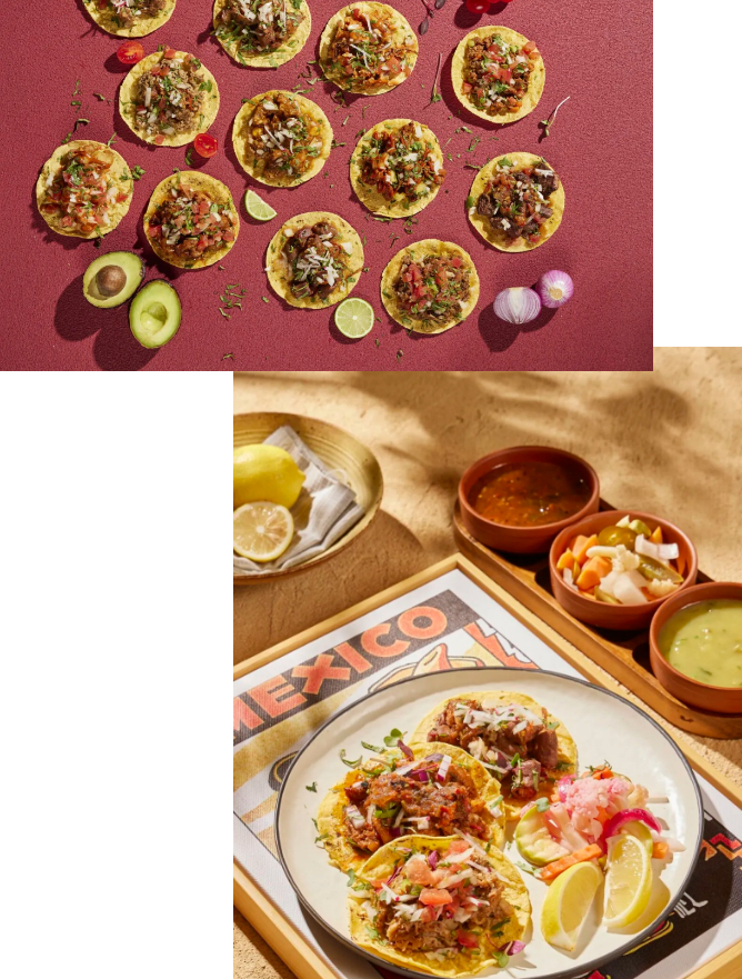 Mojí Mexican Restaurant墨纪墨西哥餐厅,色彩斑斓的配色,幽默风趣的老板,是热情的墨西哥标志性的格调。本次塔可节,墨纪带来了今年刚刚上市的新品塔可:辣炖蹄筋塔可(Spicy beef tendons,主料牛蹄筋),农夫塔可(Campechano 主料猪牛混合肉),牛肠塔可(Tripa 主料牛肠),配上墨纪手工调配的酱汁,燃爆味蕾,来体验今年墨纪塔可师傅的秘密武器吧!