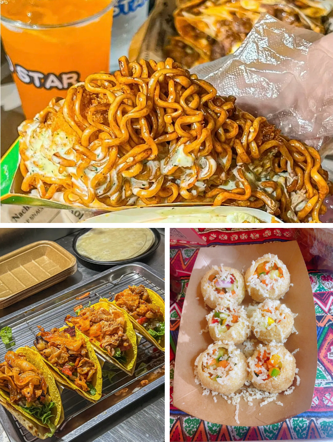 韩十七是一家包含双重品牌的店,有专注韩餐的美味韩十七,和专注于印度黑暗料理的暗黑韩十七。他们在现场推出的塔可都是韩国食材与墨西哥烹饪的梦幻联动:限定版芝士火鸡面塔可,安佳马苏里拉芝士遇上韩国三养火鸡面;韩式肥牛泡菜塔可,主要原料包括肥牛、泡菜,保留了泡菜的酸辣口感,又展现了塔可的丰富层次。另外,现场还有印度暗黑小吃Panipuri脆球,干净又卫生!