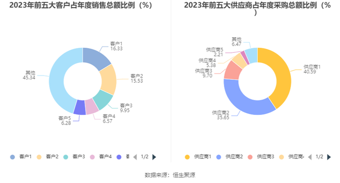 报告期内,公司前五大客户合计销售金额2.89亿元,占总销售金额比例为54.66%,公司前五名供应商合计采购金额7.22亿元,占年度采购总额比例为93.53%。